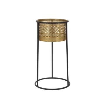 Portavasi rotondo in metallo dalle linee intrecciate che richiamano il rattan e il bamboo. il design semplice si sposa perfettamen...