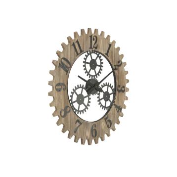 Orologio rotondo da parete in metallo e legno dal design ispirato alle foglie delle piante tropicali. funzionamento con batteria a...