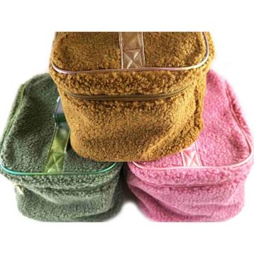 Beauty case morbido effetto teddy con manico in similpelle