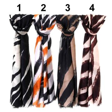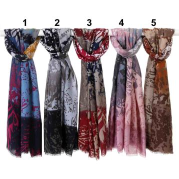 Sciarpa donna in viscosa fantasia righe e foglie Capoverde