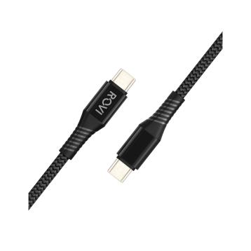 Cavo per ricarica trasferimento dati ad alta velocità rivestito in tessuto nero.