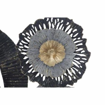 Pannello decorativo 3d da parete in metallo e legno dalle forme astratte e impreziosite da eleganti foglie.