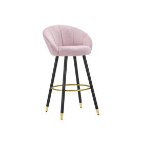 Sgabello bar rotondo imbottito in velluto sintetico con schienale con poggiapiedi in metallo dorato. la forma semplice e le linee ...