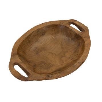 Svuotatasche dalle forme tondeggianti in teak riciclato, realizzato a mano con bordo intagliato, emana una raffinata eleganza. la ...