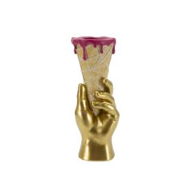 Elegante vaso in resina dorata a forma di labbra che sorridono.