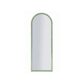 Specchio da parete con cornice in legno rivestito in tessuto dalle linee semplici e con la parte superiore che forma un arco.