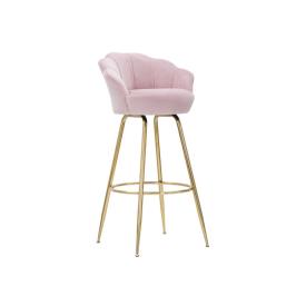 Elegante sgabello in metallo dorato con tessuto imbottito rosa dall'originale design a forma di cuore con riccioli. il metallo dor...