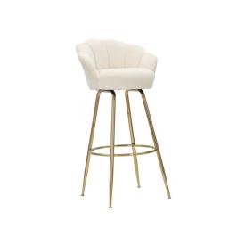 Sgabello bar in velluto color crema con gambe dorate dal particolare design che richiama i petali di un fiore. l'eleganza del vell...