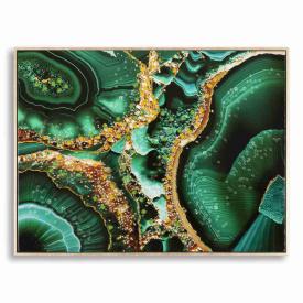 Stampa dipinta su tela con telaio in legno dal design astratto e dai toni caldi impreziositi da decorazioni dorate