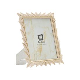 Cornice rettangolare da appoggio in resina dal design che ricorda le canne di bamboo e improziosita da un fiore e un fenicottero. ...