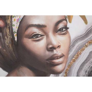 Dipinto su tela completo di telaio raffigurante una donna con trucco che richiama le popolazioni tribali. un tocco di multietnicit...
