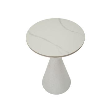 Tavolinetto elegante con base in metallo argentato e top in marmo. la base sinuosa e sembra abbracciare delicatamente il marmo, cr...