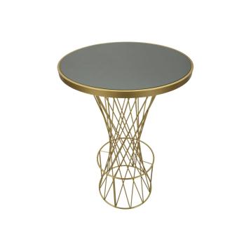 Tavolinetto rotondo in metallo dorato dalle linee semplici ed essenziali con piano in vetro a specchio.