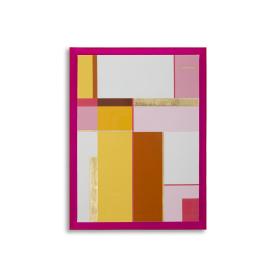 Stampa dipinta su tela con telaio in legno dal design che rimanda al cubismo e dai colori accesi