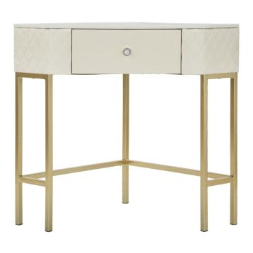 Console ad angolo trapuntata in simil pelle con eleganti gambe dorate e poggiapiedi integrato. pomello a forma di brillante per un...