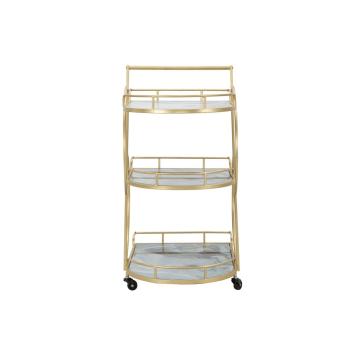 Carrello portavivande con struttura in metallo dorato con 3 ripiani in vetro realizzati con lavorazione simil marmo. il design geo...