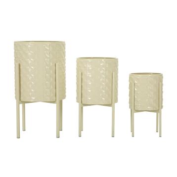 Tris di cachepot dal design materico e naturale, caratterizzati da una texture verticale effetto legno. versatili e resistenti, so...