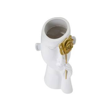 Vaso raffigurante un volto stilizzato con eleganti tratti dorati ispirato alle tribù primitive.