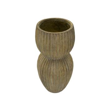 Dalla forma ampia e schiacciata, questo vaso si distingue per la texture scanalata e il colore naturale.un elemento decorativo di ...