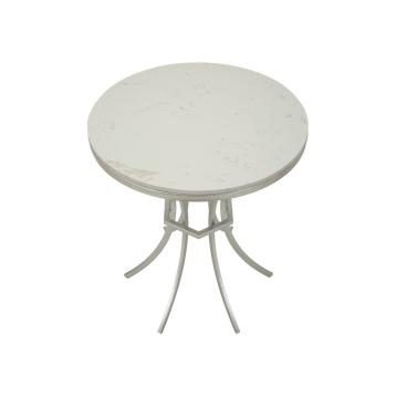 Tavolinetto in metallo argentato con base a linee intrecciate, che si uniscono con eleganza. il top in marmo, con le sue venature ...