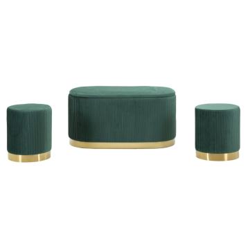 Panca e sgabelli in velluto verde con finiture dorate. un tocco vivace e sofisticato per ambienti che vogliono farsi notare con st...