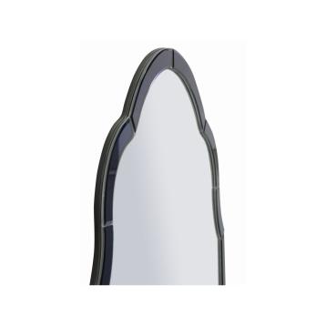 Specchio da parete con cornice in legno rivestito in tessuto dalle linee semplici e con la parte superiore che forma un arco.