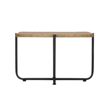 Tavolo da caffé rettangolare con struttura in metallo nero e piano in rattan intrecciato. il design semplice ma accattivante lo r...