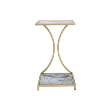 Tavolo portatelefono quadrato in metallo dorato dalle linee geometriche che creano un perfetto intreccio. completo di piano in vet...