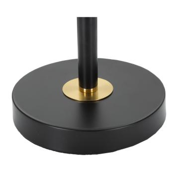 Essenziale lampada da tavolo in metallo nero e oro con paralume in tessuto a due livelli, il livello interno è bianco mentre quel...