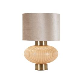 La lampada da tavolo perly esprime un'eleganza raffinata con la sua base cilindrica scanalata in finitura perlata e dettagli dorat...