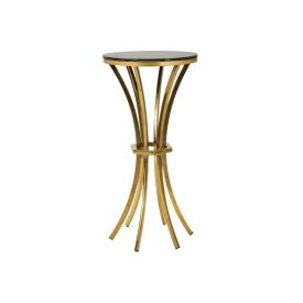 Tavolinetto rotondo in metallo dorato dalle linee semplici ed essenziali con piano in vetro a specchio.