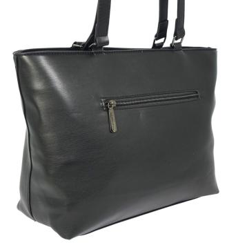 Tessuto in ecopelle logato. logo in metallo con scritta in rilievo.