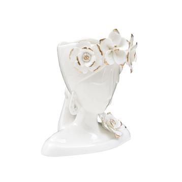 Elegante vaso in porcellana bianca con delicate decorazioni dorate. il particolare design ispirato ad un volto femminile e le form...