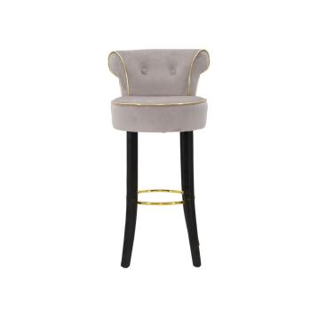 Sgabello bar in legno e velluto grigio. sedute dalla finitura dorata che si ispirano ai camerini delle grandi dive di hollywood. i...