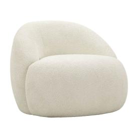 Poltrona in tessuto imbottito beige dalle linee morbide e avvolgenti, le gambe in metallo dorato donano un tocco di classe e lumin...