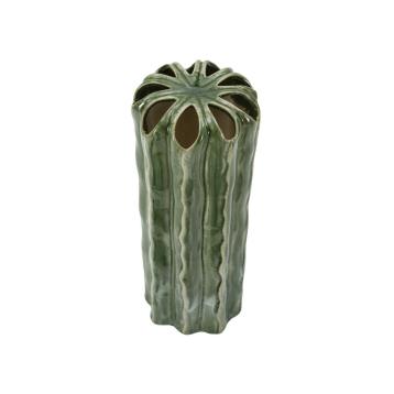 Vaso in ceramica dal design morbido e sinuoso con eleganti decorazioni in rilievo.