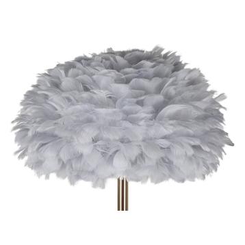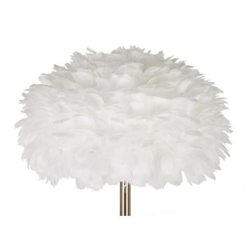 Piantana in metallo dorato dal design lineare completa di elegante paralume composto da piume sintetiche.