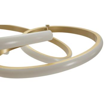 Lampadario in metallo dorato dalle linee semplici ed essenziali con 5 punti luce in metallo dorato e vetro.