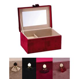 Elegante portagioie a forma di cassettiera in velluto, disponibile in colori assortiti.