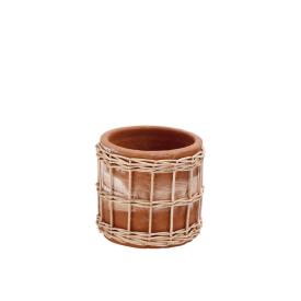Cachepot rotondo con decorazioni ondulate in rilievo che ricordano delle foglie intrecciate.