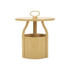 Tavolo portatelefono quadrato in metallo dorato dalle linee geometriche che creano un perfetto intreccio. completo di piano in vet...