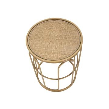 Tavolinetto in metallo dorato con il piano composto da cerchi in vetro a specchio.