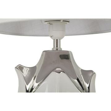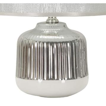 Lampada da tavolo in ceramica bianca e argentata con eleganti linee geometriche in rilievo. completa di paralume in tessuto argent...