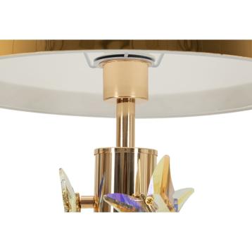 Lampada da tavolo in resina a forma di pappagallo impreziosito da eleganti decorazioni dorate.