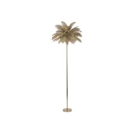 Piantana in metallo nero dal design arcuato e lineare completa di elegante paralume composto da piume sintetiche.