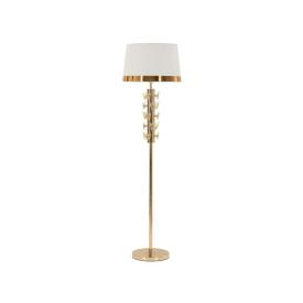 Piantana in metallo dorato con elegante decorazione morbida e sinuosa completa di paralume composto da piume.