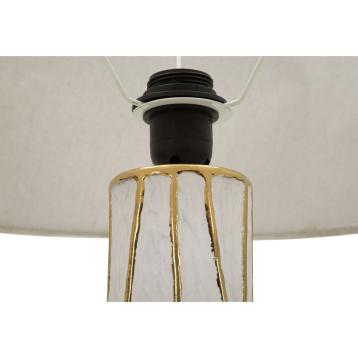 Lampada da tavolo in resina con eleganti decorazioni geometriche in rilievo. completa di paralume in tessuto bianco.
