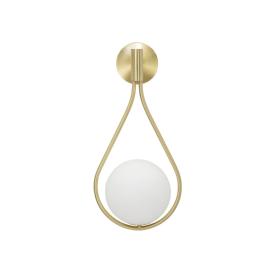 Lampadario in metallo dorato con sfera in vetro bianco. le linee essenziali ed il particolare design che ricorda un goccia si spos...