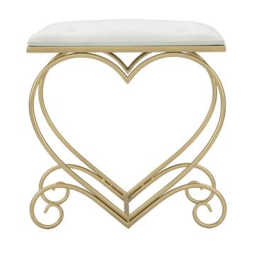 Elegante panchetta in metallo dorato con tessuto imbottito crema dall'originale design a forma di cuore con riccioli. il metallo d...