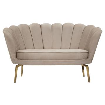 Divano due posti ocra con gambe dorate da assemblare, rivestito in velluto trapuntato. ideale per ambienti moderni e raffinati, ag...